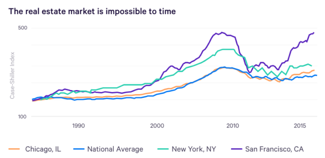 We’ve said it before and we’ll say it again: timing the market is impossible. But what most people don’t realize is that this is absolutely true for the real estate market. Like the stock market, real estate volatility is hard to avoid, as evidenced by the Case-Shiller Home Price Indices. Just as home prices will go up, you can also count on them to come down.