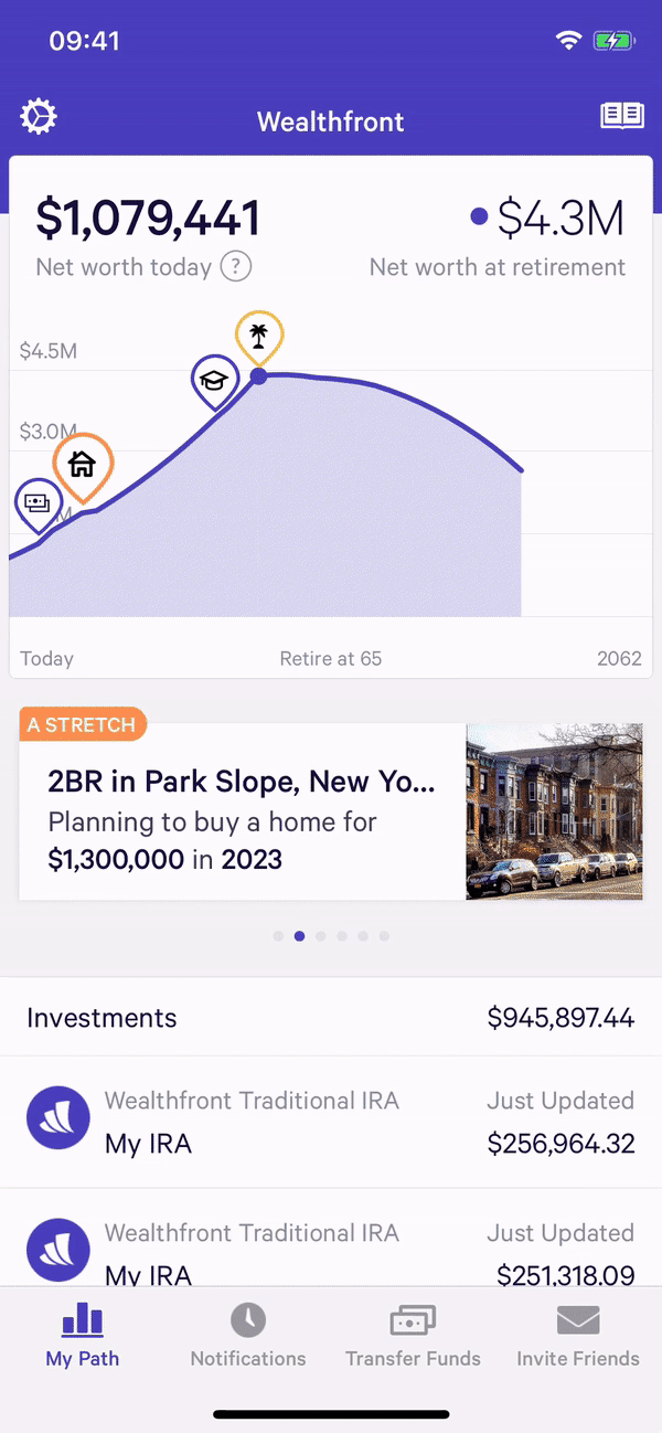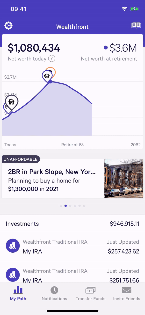 Path’s home planning feature is a first-of-its-kind experience, allowing you to not only understand what you can afford today, but also what it takes to be in the best position to purchase the home that fits your needs in the future. Further, Path helps you understand the impact of owning a home on your future goals, such as retiring early to take up a passion project or paying for your child’s college tuition. And just like with our Path retirement and college planning features, we’ve done all the hard work for you so you can actually enjoy the process of planning for a home.