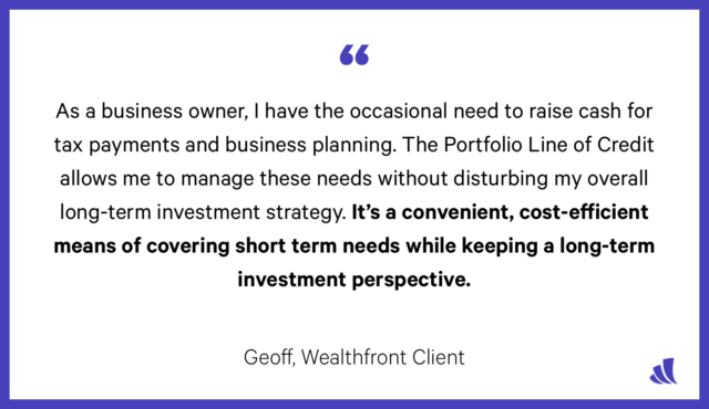 Managing an unruly tax bill without knocking your financial plans off the rails is far from the only use for a Portfolio Line of Credit (and probably the least fun, to be honest). This is an effortless option when you need some quick cash to cover a bill (credit card, tuition, medical expenses) or to kick off a large purchase, like a new car or home renovation. Want to invest in your friend’s new venture or get your own startup off the ground? Wealthfront’s Portfolio Line of Credit is a fast and easy way to inject cash where you need it, no hoops to jump through — and you can pay it back on your own timeline. The interest accrues until you’re ready to pay back the loan, so you don’t even need to make monthly payments.