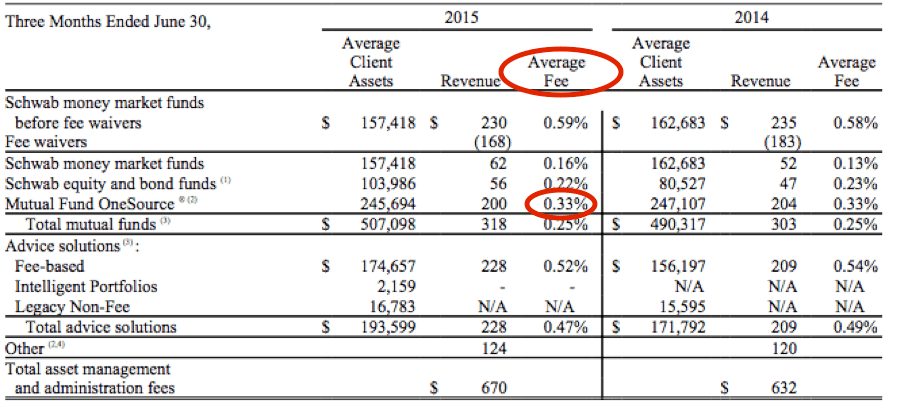 But here’s the curious thing about this “free” program: Somehow, Charles Schwab earned $200 million from these “no-load” funds in Q2 alone. Here’s the table from its Q2 10-Q filing: