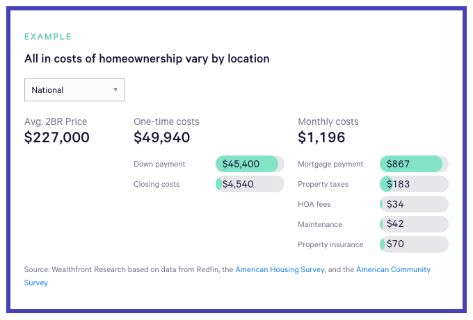 Although HGTV makes it all look like fun and games, the truth is houses are expensive. Closing costs can add an additional 4% to your home’s purchase price, and unexpected repairs can hardly even be called “unexpected” — they’re going to happen. Again, Wealthfront’s home planning feature will help you play with all the numbers and see what’s possible. We pulled the cover off the actual costs of buying a home and include them in them when cooking up the projections and recommendations you’ll see in our free planning feature.