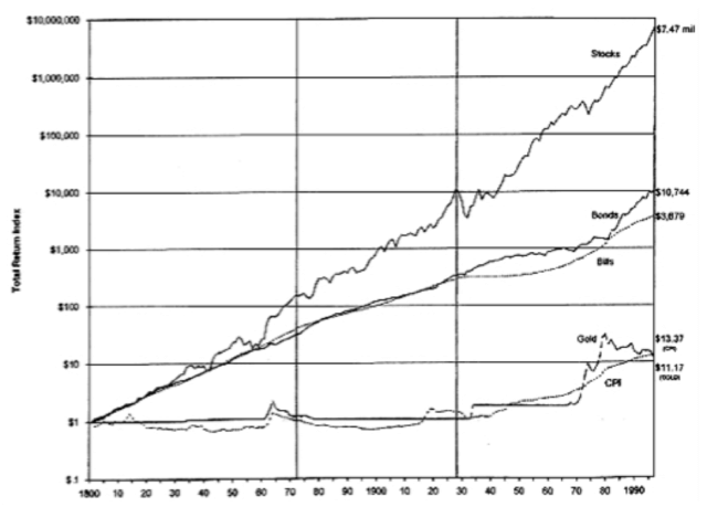 Source: Jeremy Siegel. “Total Return Index.” Stocks for the Long Run, 1994