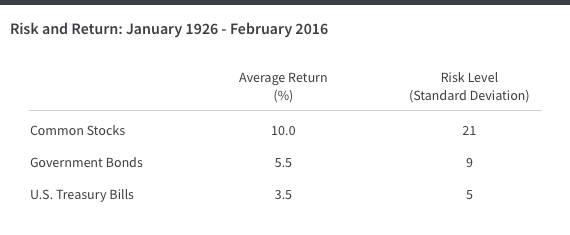 If I buy a 30-day U.S. Treasury bill to yield 3% and hold it for 30 days, I am virtually certain to receive a 3% return. If I then reinvest proceeds in another bill in 30 days, I will also get a certain return although it may be a bit more or less depending upon whether interest rates change. If I have a 10-year U.S. Government bond that promises a 5% yield, I will be assuming more risk because bond prices will fluctuate with changing interest rates. During a period when interest rates rise sharply, I could even lose money on my bond purchase as bond prices fall to reflect the higher interest rates. Similarly, the returns in any period from holding equities are likely to be very variable. In periods such as the first six weeks of 2016, portfolios of common stocks lost 10% of their value or more.